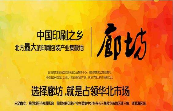 选择廊坊就是占领华北市场。受区域经济发展影响,我国包装印刷产业主要集中分布在长三角及华东地区珠三角、环渤海区域。廊坊是京津冀地区印刷包装企业聚集中心,辐射周围30公里范围内,孕育着3000家以上的大中型印刷包装厂家,形成了强大的市场购买力。